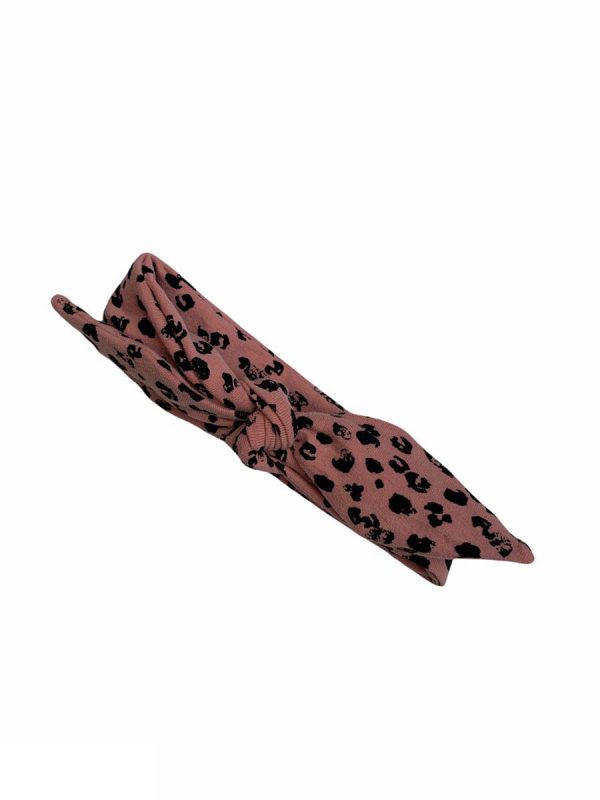 Knoophaarband met strik oudroze panterprint
