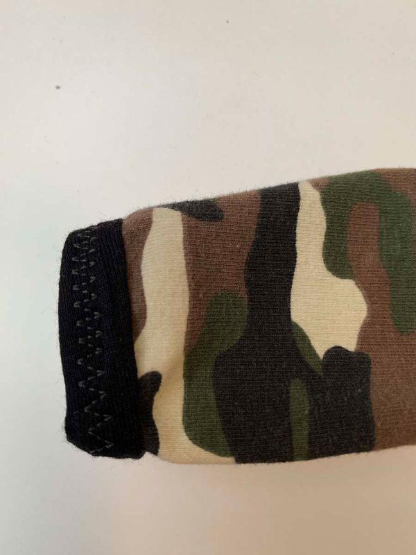 Een rompertje met lange mouwen voor prematuur baby’s, dysmatuur baby’s en sterrenkindjes. Het is gemaakt van zachte tricot stof met camouflageprint. Aan de onderkant zit een sluiting van zacht klittenband en aan de zijkanten met zwart lint.