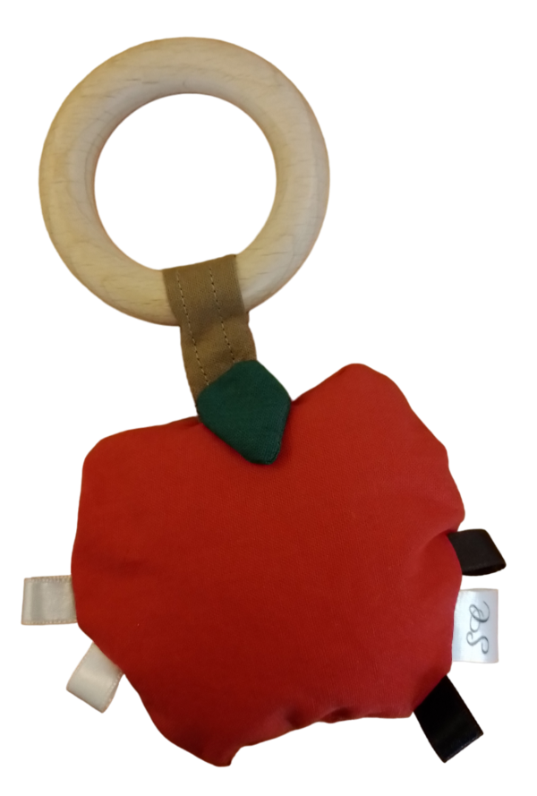Was de appel en het blaadje onder de kraan met de hand of neem hem af met een vochtige doek. De houten ring kan schoongemaakt worden met een vochtige doek. Doe de rammelaar NIET in de wasmachine en NIET in de droger. Laat het aan de lucht drogen.