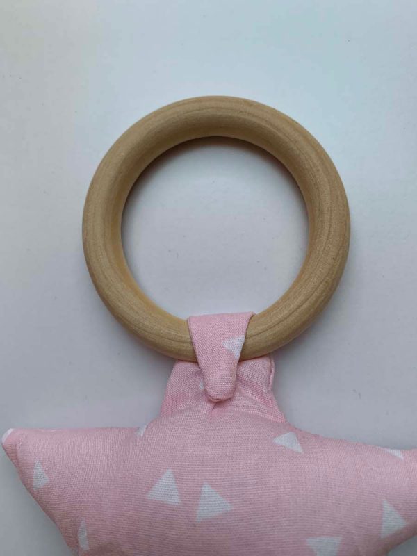 Was de ster onder de kraan met de hand of neem hem af met een vochtige doek. De houten ring kan schoongemaakt worden met een vochtige doek. Doe de rammelaar NIET in de wasmachine en NIET in de droger. Laat het aan de lucht drogen.
