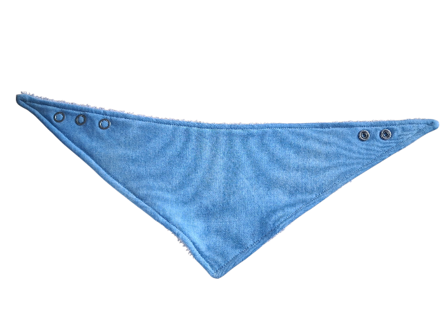 Een kleine, hippe slabber met uni jeansprint die veel vocht opneemt. Hij is leuk te combineren met de kleding van Steffie’s Crafts.