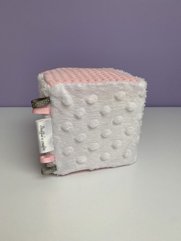 De speelkubus zonder houten of siliconen attributen en met een vulling van losse fiberfill kunnen gewassen worden in de wasmachine op maximaal 40 graden. Echter adviseren we te wassen op een lagere temperatuur zodat de stoffen mooi blijven.
