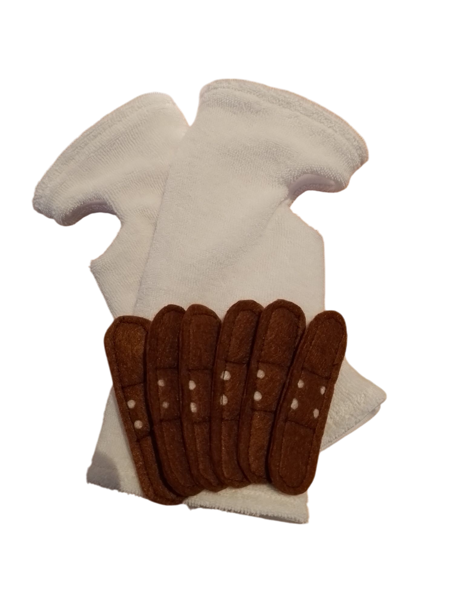 Een leuke stoffen gipsverband. Gemaakt van zachte stoffen en speciaal gemaakt voor kinderhanden. Leuk om te gebruiken tijdens het doktertje spelen.